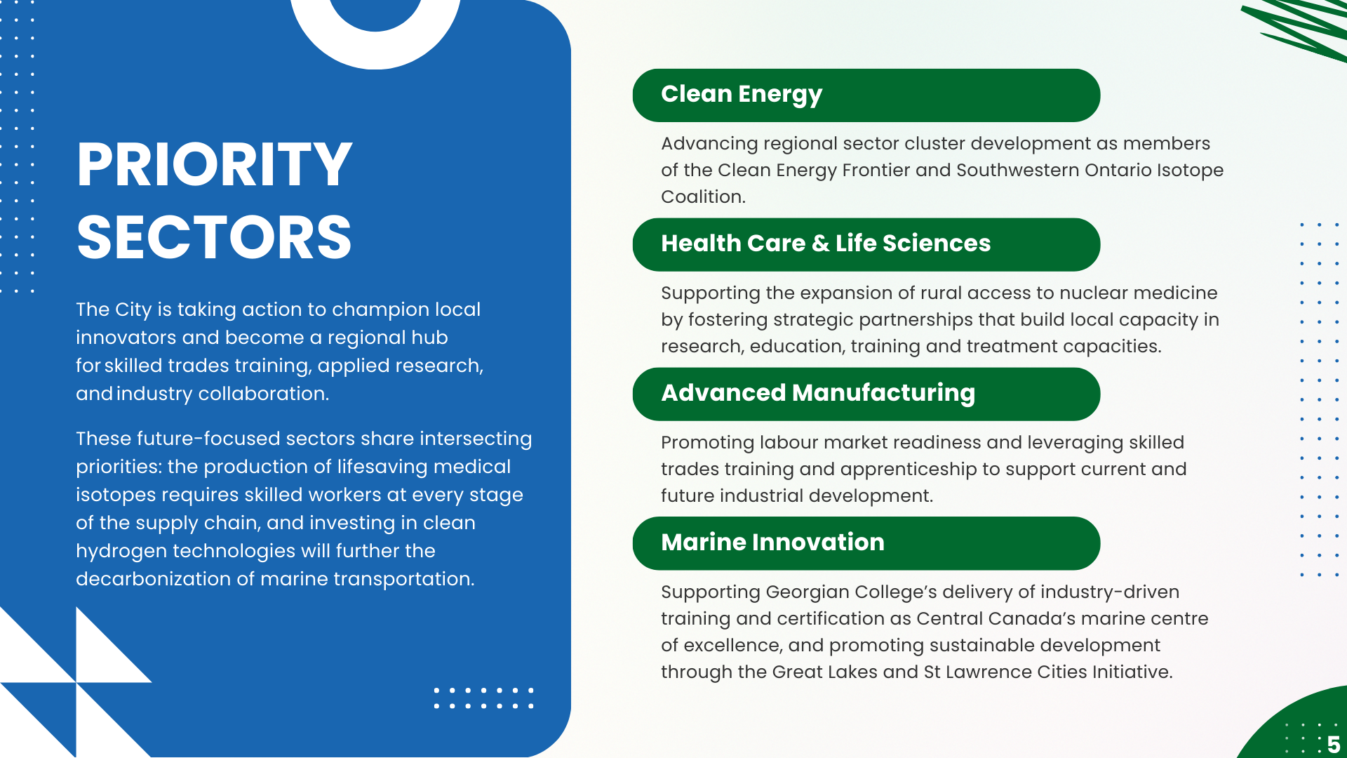 Four sectors will be prioritized for investment readiness and attraction initiatives: