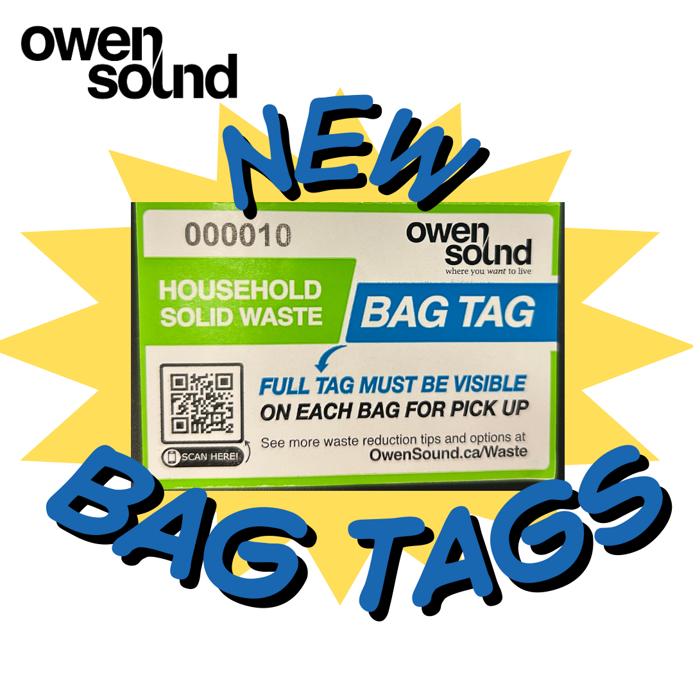 The City of Owen Sound uses a bag tag payment program to encourage recycling and put a value on our environment. A bag tag is required on each bag or container placed at the curb for pick-up.