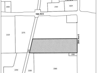 The subject lands are described as the southerly portion of the unopen portion of 21st Street East, west of 9th Avenue East. Attached is a key map that depicts the portion of the right of way that is being considered to be stopped up, closed and declared surplus and sold.