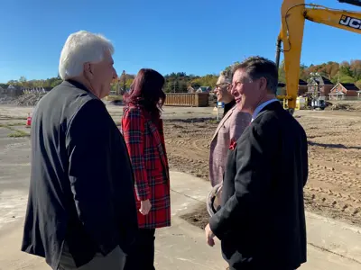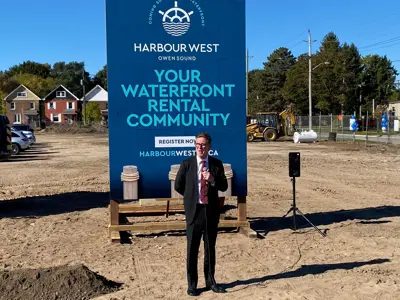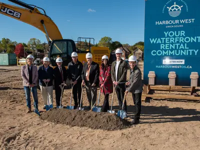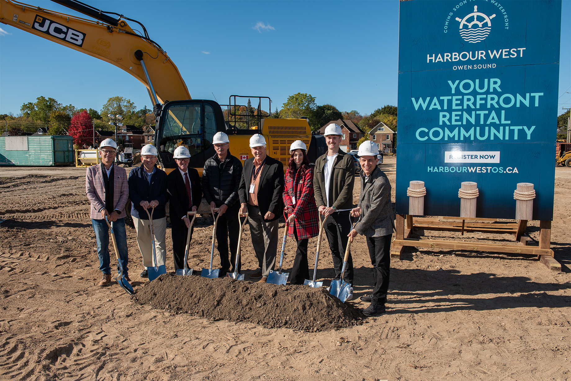 Construction has officially begun on ‘Harbour West’, a major new housing development that will bring 224 rental apartments to Owen Sound’s west waterfront area. The groundbreaking ceremony marks an exciting new chapter for the former Black Clawson Kennedy (BCK) property at 1144 1st Avenue West.