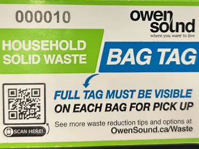 A bag tag must be affixed to every bag of garbage set out for collection, or it will not be picked up.