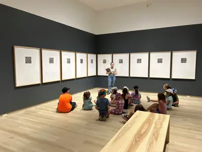 During guided tours, students dive into lively discussions about current exhibitions, examining artworks and sharing their thoughts with fun art terminology. These interactive experiences enhance observational skills and deepen their appreciation of artistic concepts. Book your class in today!